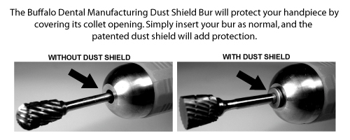 - Dust Shield shanks protect expensive handpiece spindles, bearings, and chucks by covering the chuck opening blocking out damaging dust and debris